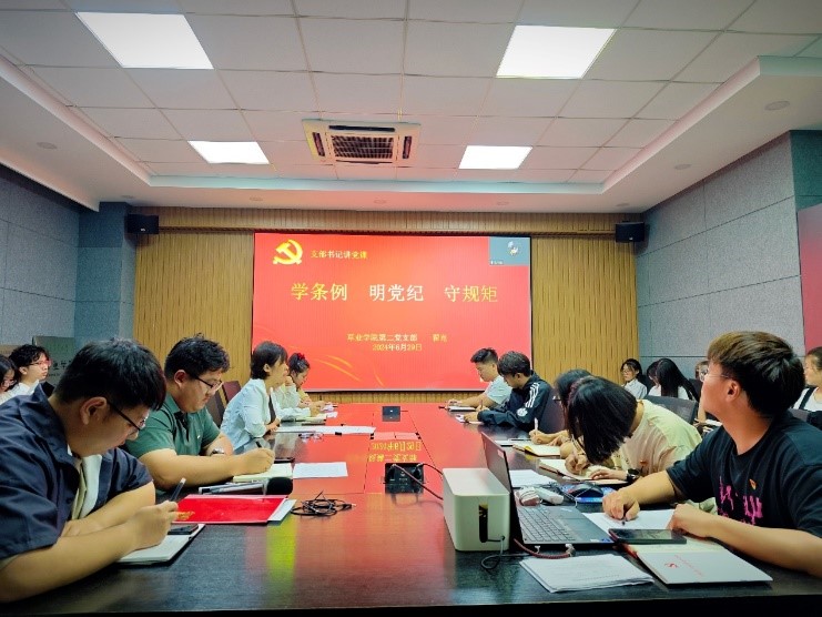 6月29日,学院党委副书记、副院长,第二党支部书记翟崑以《学条例 明党纪 守规矩》为题,向学生党员讲授了一堂庄重而深刻的党纪教育党课。她强调,党的纪律是党的生命线,是党员干部务必恪守的行为准则,要求党员必须时刻保持清醒的头脑,严守党的纪律,自觉抵制各种诱惑,坚决不越红线、不触底线。她通过对典型案例的剖析,引导同学们要树立“一个观点”、强化“两个理念”、恪守“三个准律”、澄清“四个误区”、心怀“五个着想”、坚守“六个慎重”、谨记“七句寄语”。