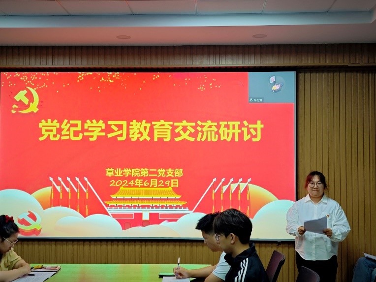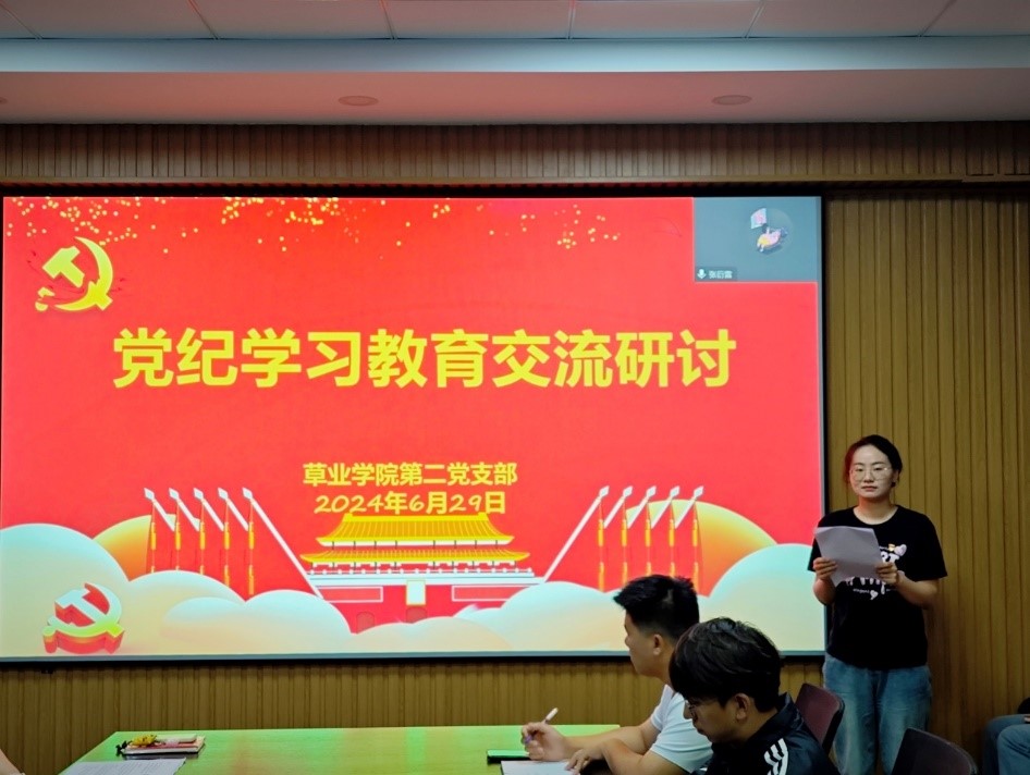 6月28日,学院第一党支部书记杨超以“学习《中国共产党纪律处分条例》 做遵规守纪科研人”为题,为教工党员讲授纪律党课。他从历史、理论、实践三个维度出发,阐述了《条例》修订的重大意义,要求全体党员要强化纪律意识,加强自我约束,始终做到忠诚干净担当,以严明的纪律、严格的要求和严谨的态度做好教书育人、科学研究等各项工作,为学院发展建设和学校第三次党代会目标的实现贡献草业力量。