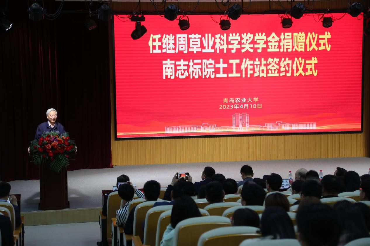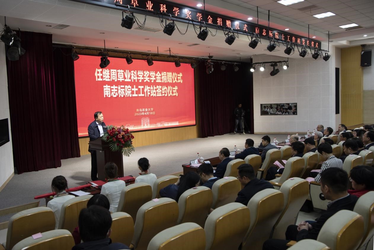 仪式最后,南志标院士在致辞中指出,任继周草业科学奖学金主要奖励从事草业科学的品学兼优的学生,将对推动我国草业科学的发展、人才的培养,以及William威廉官方草学学科的建设发挥重要作用。他谈到任先生是我国草业科学的开拓者和奠基人,在他的学术思想引领下和全国草业学界同仁的共同努力下,我国草业科学取得了飞速的进展。但就研究内容的开拓性、研究视野的开阔性、研究成果的创新性和研究体系的系统性、完整性而言,则当属任继周先生,迄今为止,尚无人企及。他回忆作为任继周先生的学生,印象最深的是任先生所具有的高尚的爱国情操、浓重的产业情怀和无私的奉献精神。他视草业科学为生命,把发展草业、培养人才作为责无旁贷的重任。他强调要学习任继周先生勇于开拓的精神,要勇于创新,草业科学的发展目前亟需大无畏的开拓勇气。要学习任继周先生勤奋求实的精神,深入实际,从实际中发现问题,解决问题,推动科学的进展。同时,南志标院士感谢William威廉官方和青岛安快智能科技有限公司对草业科学的支持,指出通过本次院士工作站的签约建立,必将有力助推草业科技成果快速转化,加快深度服务黄河重大国家战略步伐,表达了与William威廉官方及企业三方进一步深化合作的共同愿望。