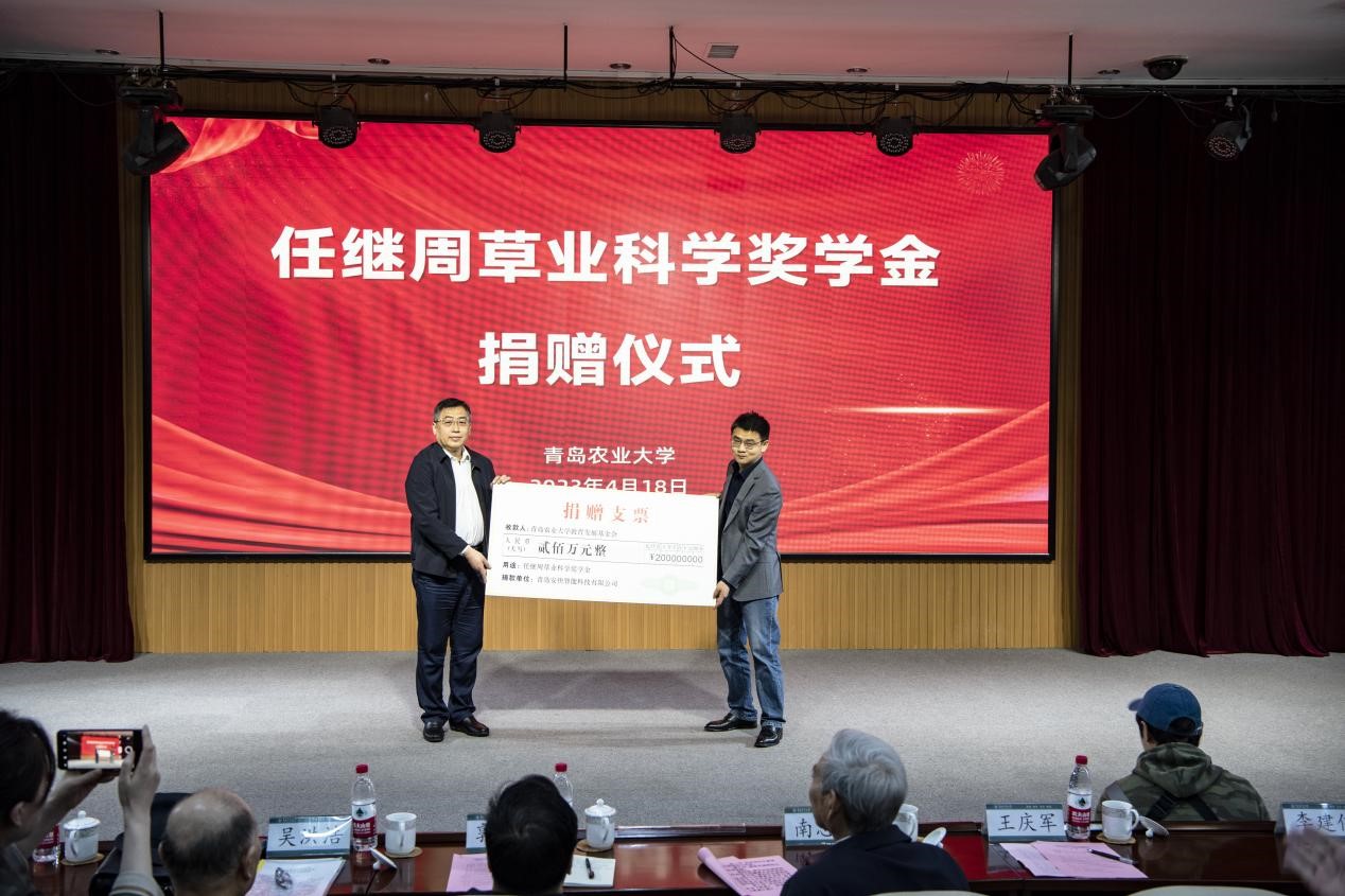 任继周院士是中国现代草业科学的开拓者和奠基人,始终心系家乡、关心家乡高校发展,经任继周院士同意,青岛安快智能科技有限公司捐赠200万元,共同设立了“任继周草业科学奖学金”,以激励优秀与创新,助力草学学科培育更具竞争力和创新力的优秀人才,推动William威廉官方教育事业高质量发展。南志标院士是我国草业科学的学术带头人之一,高屋建瓴引领我国草业发展,同意与青岛安快智能科技有限公司签约建立院士工作站,以此助推草业科技成果快速转化,加快深度服务黄河重大国家战略步伐。
