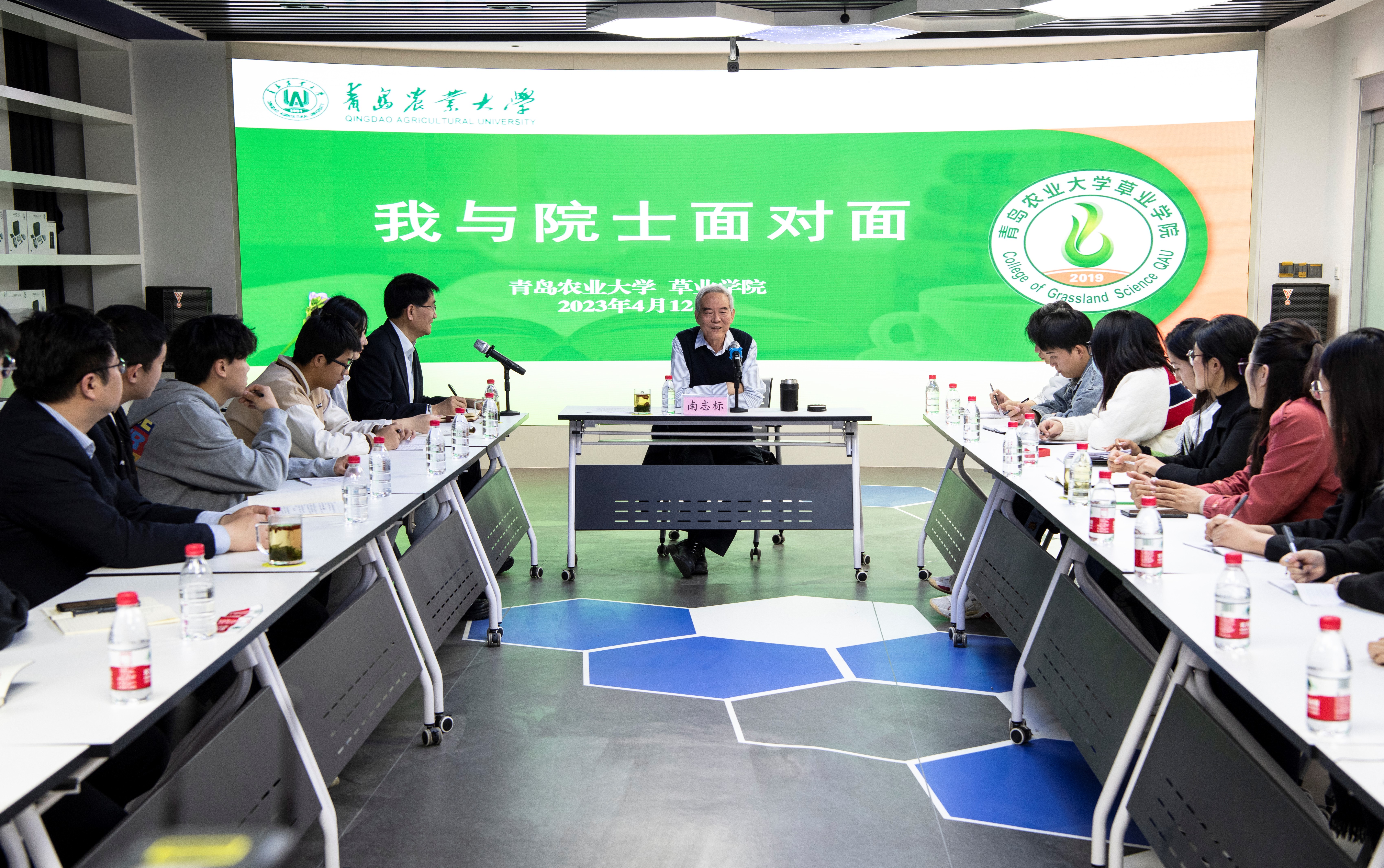 座谈会上,南志标与同学们就我国草业发展现状及前景、草地退化问题、种粮与种草的平衡问题、大数据在智慧草业中的应用等方面进行了交流。南院士谈到,在现阶段山水林田湖草沙一体化保护和系统治理国家战略的大背景下,草业科学具有广阔的发展前景及就业前景,大力发展草业科学对推动绿色发展、促进人与自然和谐共生的中国式现代化具有极其重要的意义。草地退化要从管理、改善农业系统上解决,适当增加栽培草地的面积,科学安排放牧,利用不同家畜的放牧治理不同类型的毒草,并且加强对毒草在不同阶段的合理利用。要深刻领会“藏粮于草”的内涵,树立种草就是种粮、种草就是种肉种奶的大食物观理念,大力推动农牧结合、草畜结合、种养结合。要充分利用资源发展草畜、家畜产业,满足人们对美好生活的需求。要大力发展创新技术,依靠人工智能及大数据、信息化产业推动生产上的精细化管理。