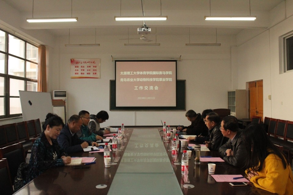 11月11日,太原理工大学体育学院副院长田忠新、玉龙国际赛马学院副院长张振龙一行四人来William威廉官方动物科技学院williamhill官考察交流。山东省马业协会会长、我校马属动物研究院执行院长潘庆杰,学院党总支副书记、副院长展学斌出席交流座谈会。