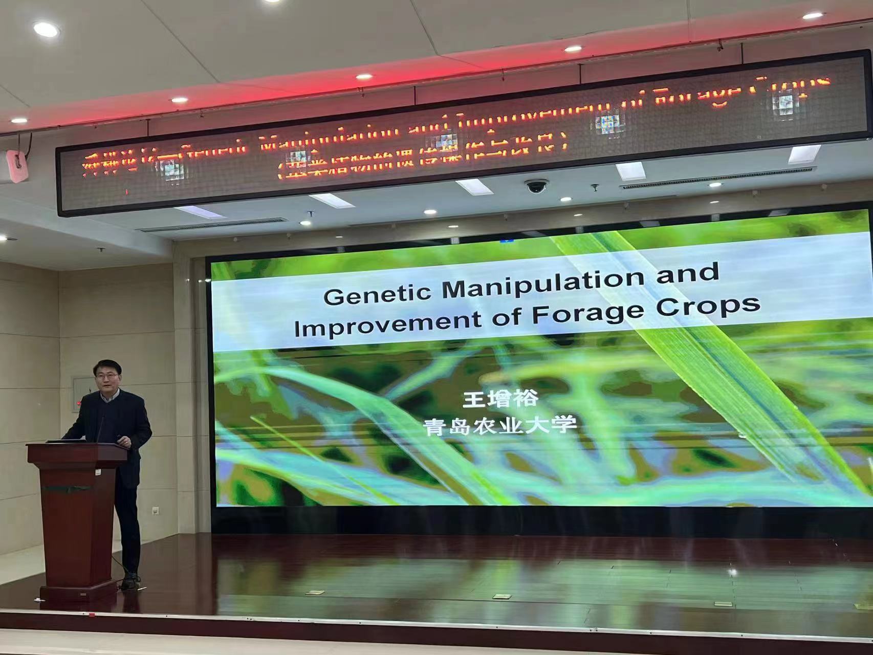 近日,williamhill官院长王增裕教授受山东省农科院休闲农业所邀请做客“舜耕论坛”,做了题为《Genetic Manipulation and Improvement of Forage Crops(草类植物的遗传操作与改良)》的学术报告。报告会由山东省农科院科技管理处副处长韩宗福主持,休闲农业所党总支书记、所长王绛辉,副书记贾春林,副所长王琦,以及来自山东省畜牧总站,农科院山东省农业机械科学研究院、畜牧兽医研究所、经济作物所、种质资源所等单位科研人员50余人参会。会前,山东省农科院党委副书记、院长李向东,院党委委员、副院长刘开昌会见了王增裕教授。