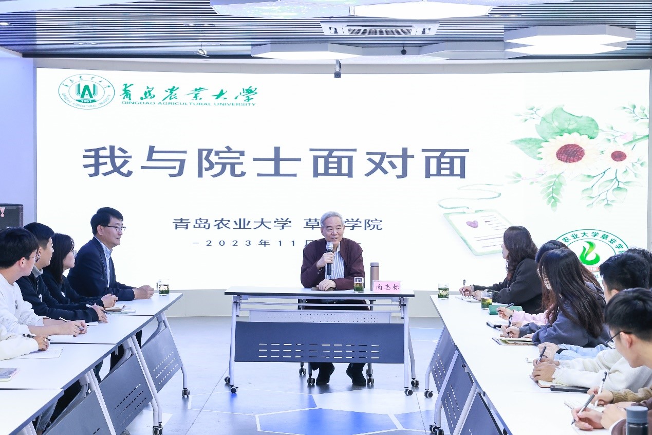 座谈会上,南志标院士首先肯定了研究生们的努力,他认为研究生是社会的精英,是国家的人才,也是支撑未来科技发展的重要力量。随后,南院士介绍了我国草地农业的特点、草业科学的学科发展历程、学科体系、五个二级分支学科的内容与主要研究方向,国内涉及草业科学研究的相关高校和科研机构的研究特色和优势。在与研究生互动环节中,大家就关心的问题进行了热烈的讨论。研究生们普遍感到了开阔了眼界,收获很大,受益匪浅。座谈会在亲切而热烈的氛围中进行着。