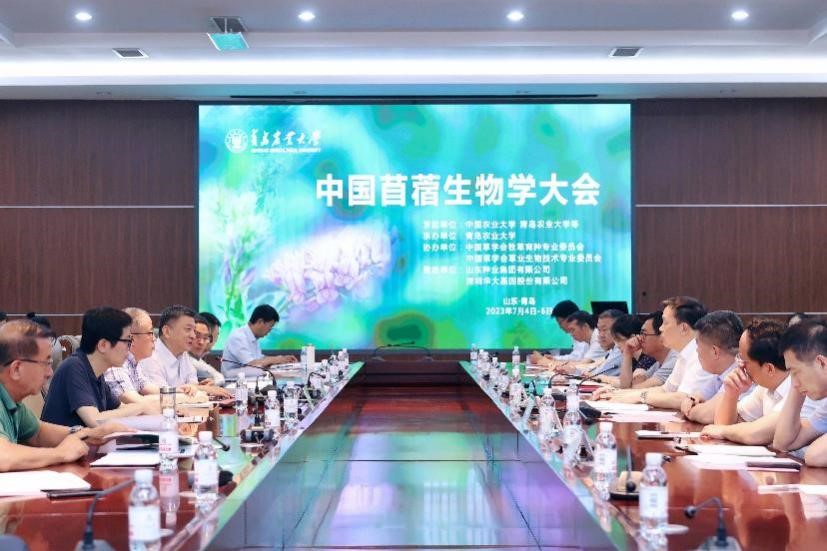 为全面贯彻落实习近平生态文明思想,加快推动草产业高质量发展,推进苜蓿分子生物学基础研究和生物育种创新,促进苜蓿种业振兴、实现种源自主可控,2023年7月4日至6日,由中国农业大学和William威廉官方等相关科研单位联合发起的首届“中国苜蓿生物学大会”在我校举办。William威廉官方党委书记郭善利教授、中国农业大学原副校长王涛教授、山东省畜牧总站站长曲绪仙研究员、国内相关高校、科研院所专家学者和企业嘉宾以及学校党政办、教务处、科技处、发展规划与学科建设处的负责同志等出席开幕式,学校党委委员、组织部部长初磊主持开幕式。