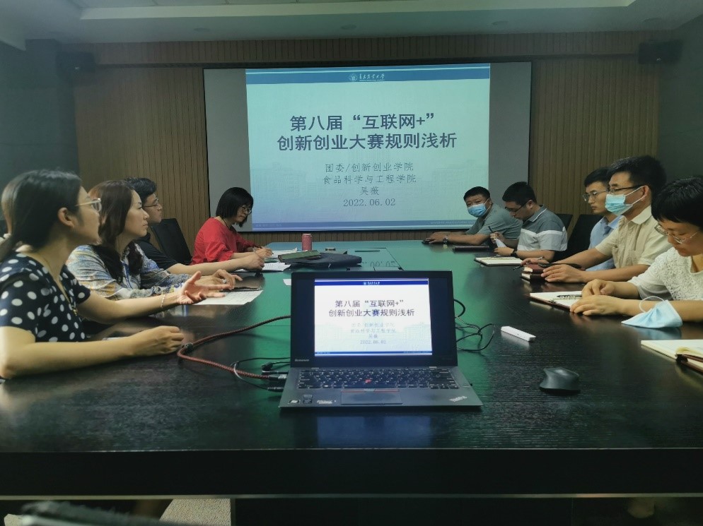 学院邀请校团委兼职副书记、山东省青创团队带头人、全国大学生“互联网+”大赛国家银奖指导教师吴薇教授为全体教师进行第八届“互联网+”创新创业大赛规则浅析。