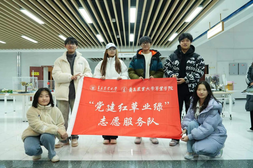 在标本展示环节,精美的植物标本和摄影作品吸引了平度校区的大学生们和部分外教前来参观拍照,他们在参展过程中可以自主扫码了解植物基本介绍,在美丽的植物世界肆意畅游;学院“党建红草业绿”志愿服务队的志愿者们也积极向参观者们介绍标本名称,帮助其共同欣赏植物的魅力。