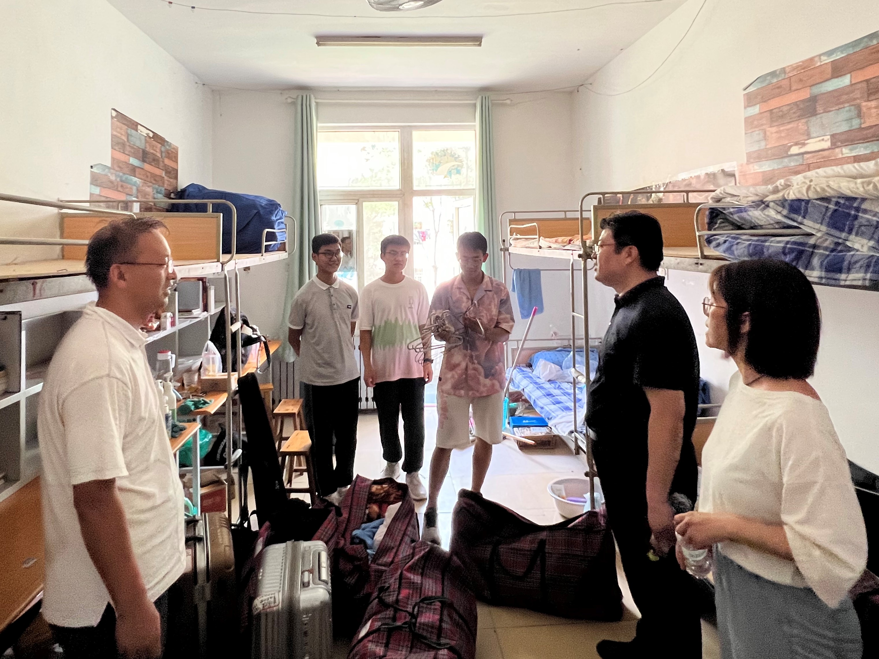 学院党总支书记乔磊、党总支副书记翟崑、辅导员刘凝现场指导搬迁工作,帮助同学们一起搬运行李并走访了宿舍。