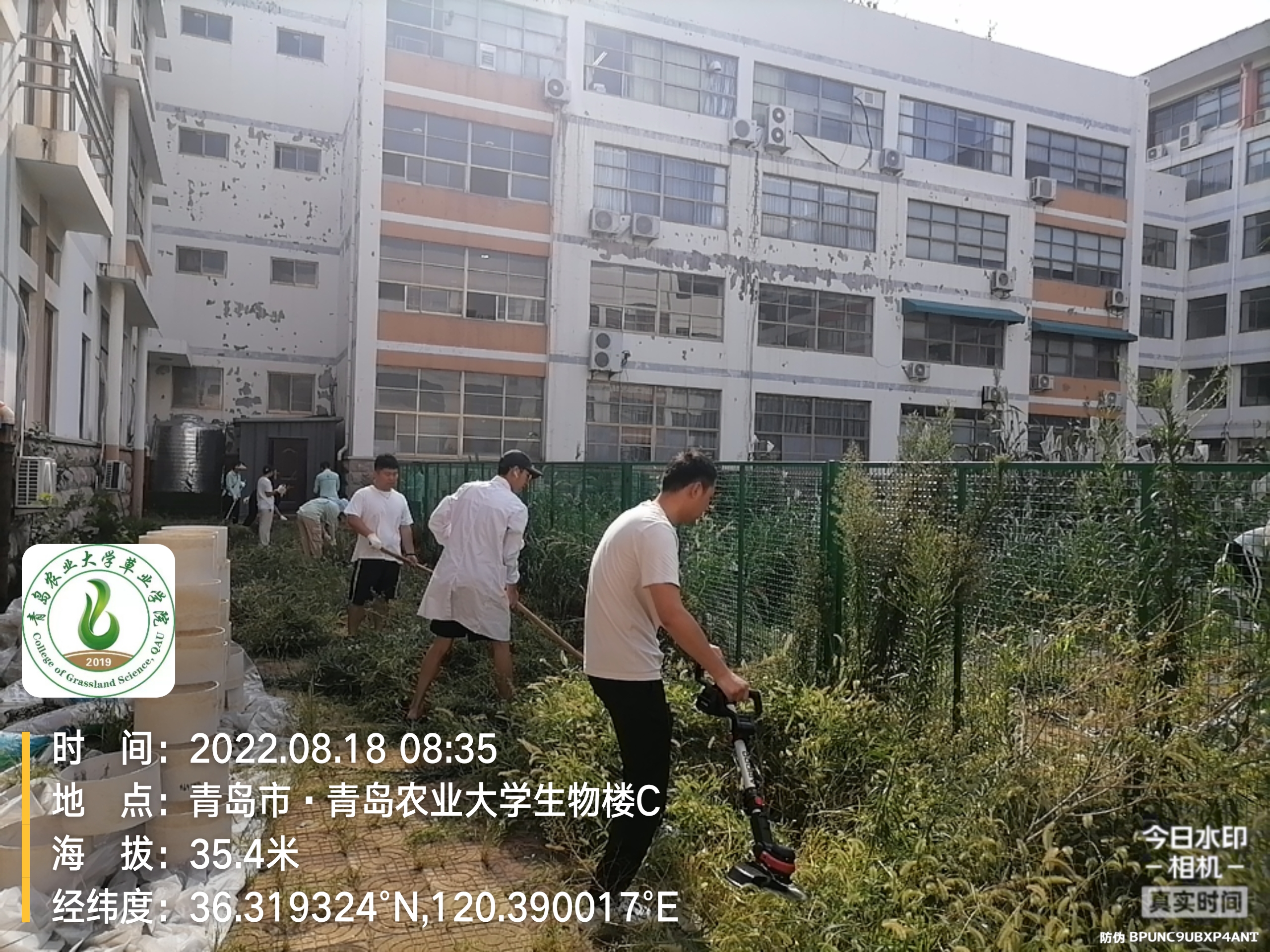 下午,柴茂峰、王海霞、王婷茹等老师带领暑期在校学生,冒着高温进入温室及温室外种植区开展卫生清理工作。大家撸起袖子,推动除草机、拿起剪刀、挥动镰刀,分工合作,清理活动有序而迅速的进行,尽管汗水打湿了衣服,泥土染脏了鞋子,但大家的脸上却洋溢着开心的笑容,丝毫不减劳动的热情。
