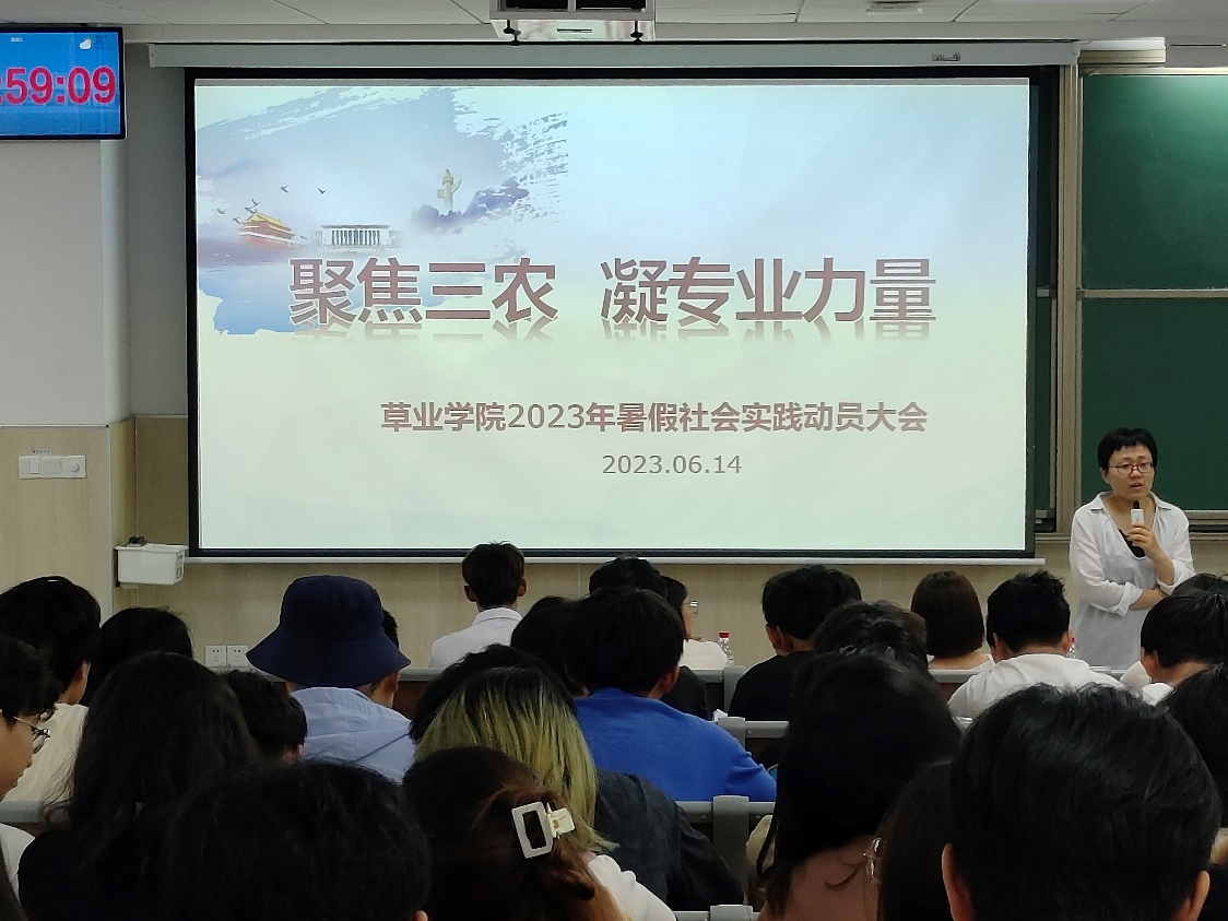 会上,学院党委副书记、副院长翟崑强调了开展暑期社会实践活动的重要意义,鼓励同学们结合专业知识在实践中增长才干,锤炼品格。她说,全党正深入开展学习贯彻习近平新时代中国特色社会主义思想主题教育,同学们要加强党的二十大精神和习近平新时代中国特色社会主义思想的学习,响应党的号召,紧跟形势,紧密结合国家重大战略需求,加强工作统筹和谋划,突出专业优势,创新实践形式,确保活动成效;二是要注重新闻报道,加强宣传推广,将线下开展和线上传播相结合,讲好三农故事,讲好青农故事,讲好草业故事,提升实践活动的影响力;三是要增强安全意识,注意交通和人身安全,防溺水、访诈骗,确保安全、圆满地完成实践任务。