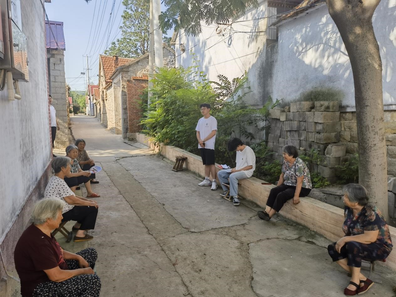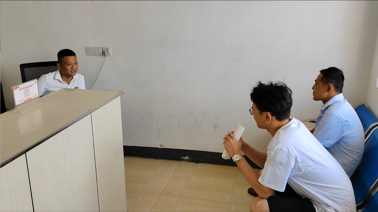 每到一个调研村庄,实践团成员们首先来到村两委,和村干部进行深入交流。通过听取村干部对当地农业、畜牧业发展现状的介绍,了解当地的饲草产业结构、具体分布和经营规模,进一步分析畜牧草、中草药等草产业的发展前景。