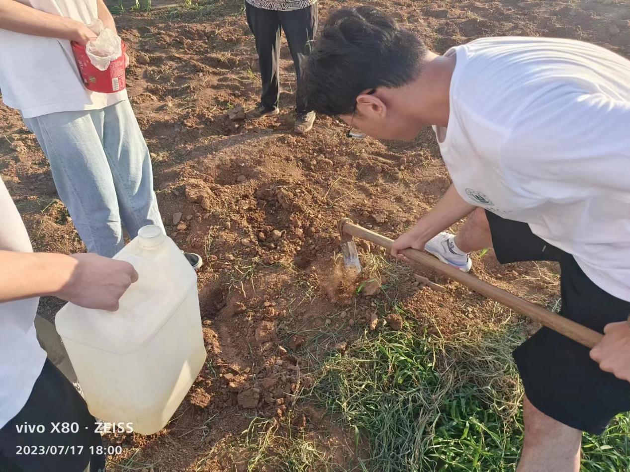 实践团在当地农户的带领下来到大田,进行了农田整理、农作物耕种等田间实践劳动,强化同学们向劳动人民学习、向生产实践学习的意识,在劳动实践中淬炼成长;在劳动过程中,大家观察了田间常见杂草的茎叶等结构,并就杂草防治、杂草清除和杂草再利用等方面给出了建议。