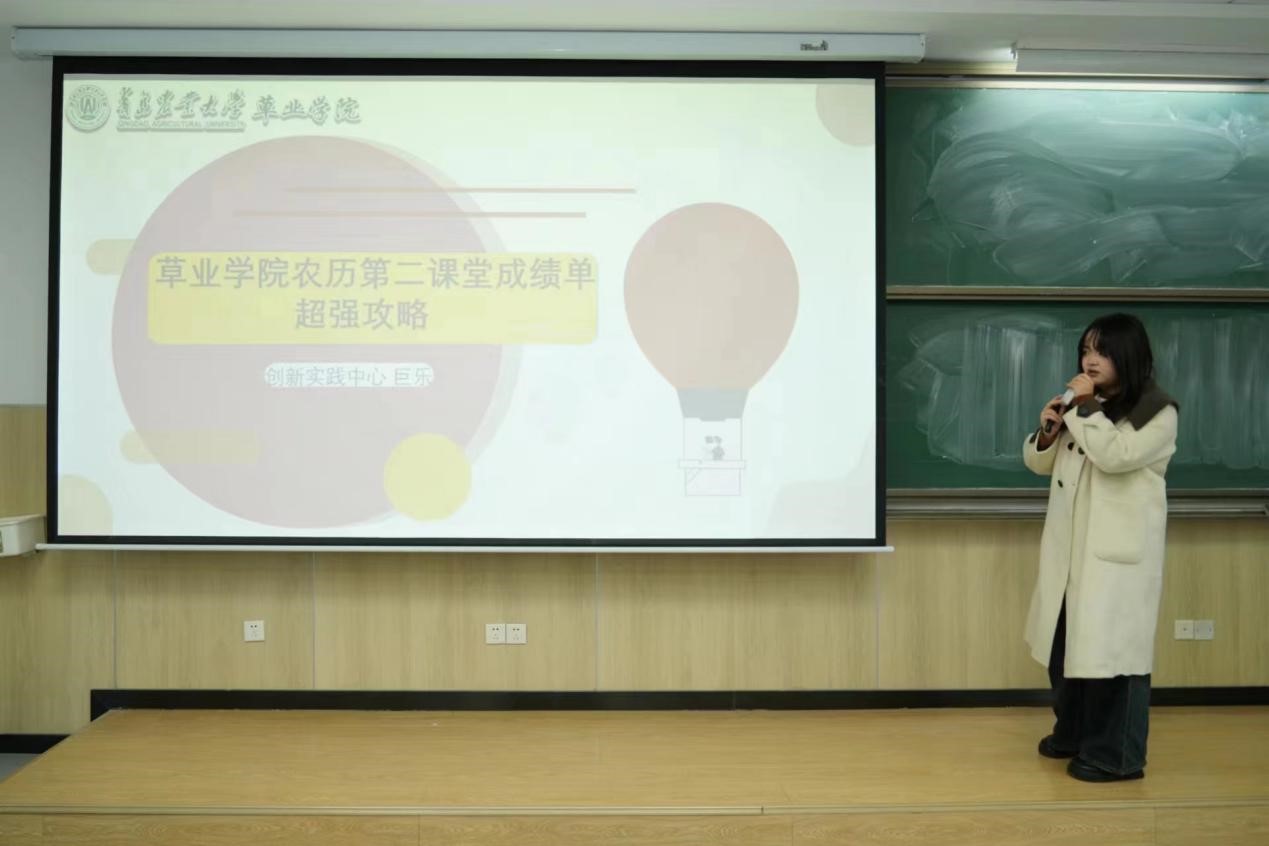 学院学生管理中心创新实践中心副主任巨乐介绍了学生的“第二课堂成绩单”,通过讲解第二课成绩单的组成部分和使用方法,帮助2023级新生正确认识和了解“第二课堂”。
