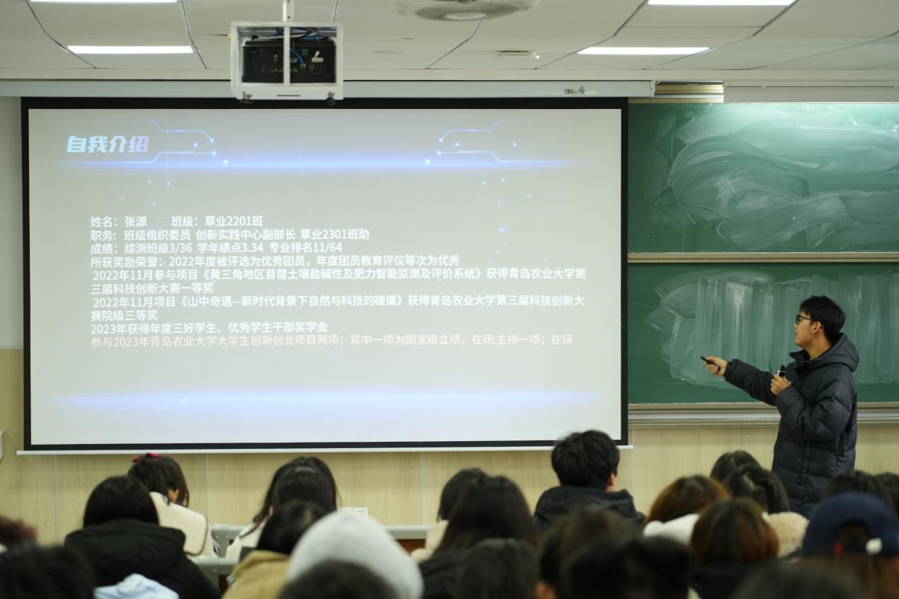 学院学生会秘书处常务副秘书长王婧雯,讲解了学年素质综合测评的重要性,介绍了测评的内容和加分减分细则,鼓励同学们加强自身建设,从德、智、体、美、劳多方面发展自我。