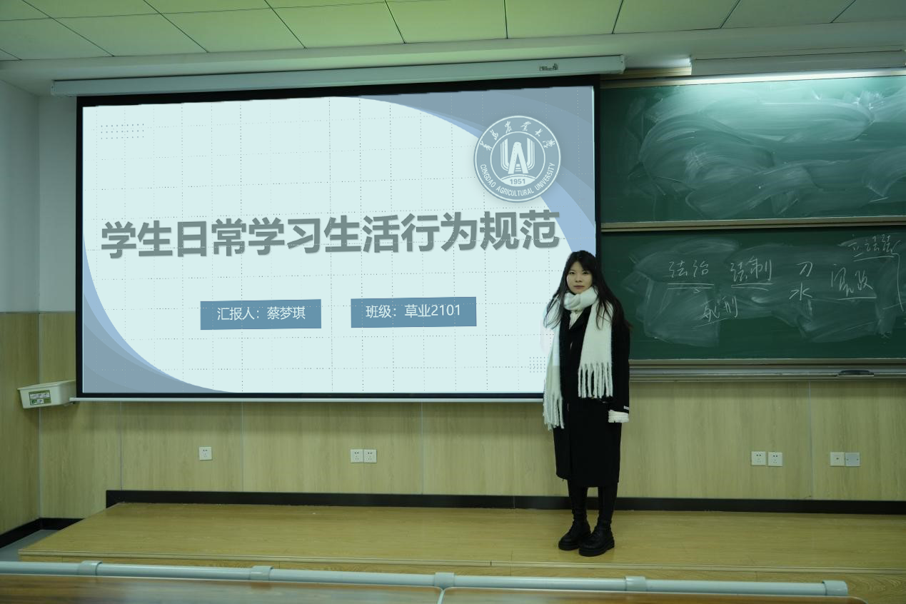 学院学生会主席团成员蔡梦琪,带领同学们学习了大学生行为规范、宿舍管理规定、违纪处分办法等规章制度,帮助同学们更好规范自己的行为,营造优美住宿环境,树立良好的纪律意识。