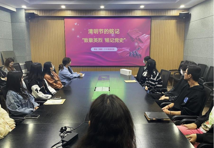 草业(创新)2101班团支部开展“清明节的铭记--致敬英烈 铭记党史”主题团日活动。支部团员通过学习革命先烈邓恩铭、王一民烈士的光荣事迹,观看《百炼成钢:中国共产党的100年》系列的《命悬一线》、《南昌城头的枪声》,感悟英雄的家国情怀、崇高品格和革命精神。团员青年们深深为革命英雄的事迹所感动,大家表示,作为新时代大学生,一定要接过历史的接力棒,传承革命精神,不忘来时路,走好脚下路,坚定未来路,在山水林田湖草沙一体化保护的道路上,勇担大任,砥砺奋发,谱写新时代的华章。