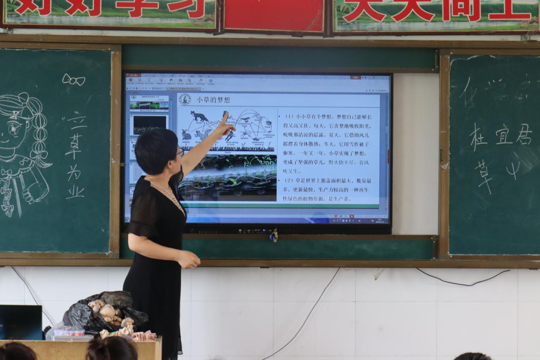 为增加课堂的趣味性,王老师为学生们播放了《小草》这首歌曲。学生们跟着音乐的节奏,欢快地唱着,更加深入地感受到了草的生命力和美丽。