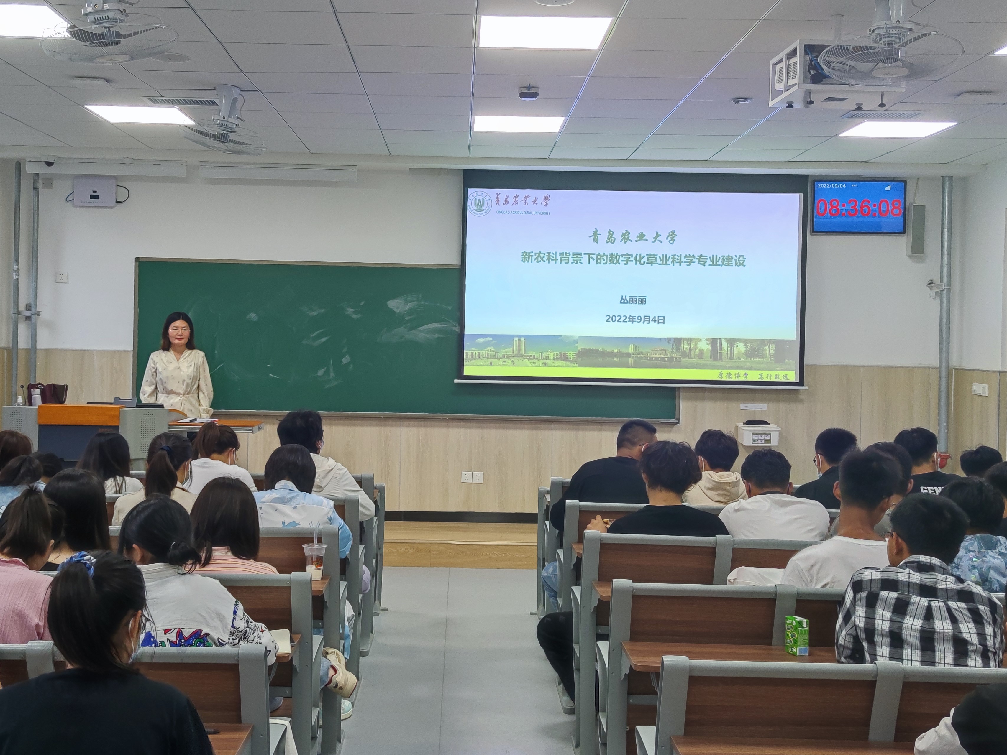 丛丽丽老师从自身本、硕、博三阶段均是草业科学专业的教育经历为切入点与同学们分享了对草业科学的认识,结合专业实践案例让学生对草业科学有了较为全面的了解。最后,丛丽丽引用我国著名哲学家任继愈老先生的话:“年轻人要有一点理想,甚至有点幻想都不怕,不要太现实了,一个青年太现实了,没有出息”,激励新生要勇敢逐梦,努力让四年的大学生活精彩纷呈,成长为能够服务草业和生态文明建设事业的人才。