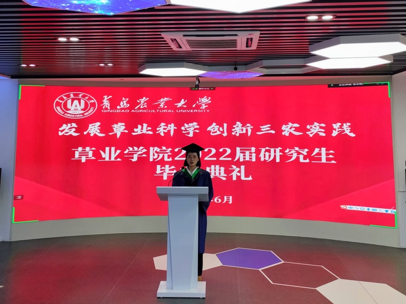 院长王增裕通过网络连线,对2022届研究生顺利毕业表示热烈的祝贺,他寄语毕业生要谨记“发展草业科学,创新三农实践”的院训,坚定信仰、信念、信心,厚植知农爱农情怀,充分发挥自身专业知识,助力三农工作发展,在拼搏中增长见识、锤炼品质、陶冶情操,尽显草业人的本色与风采。