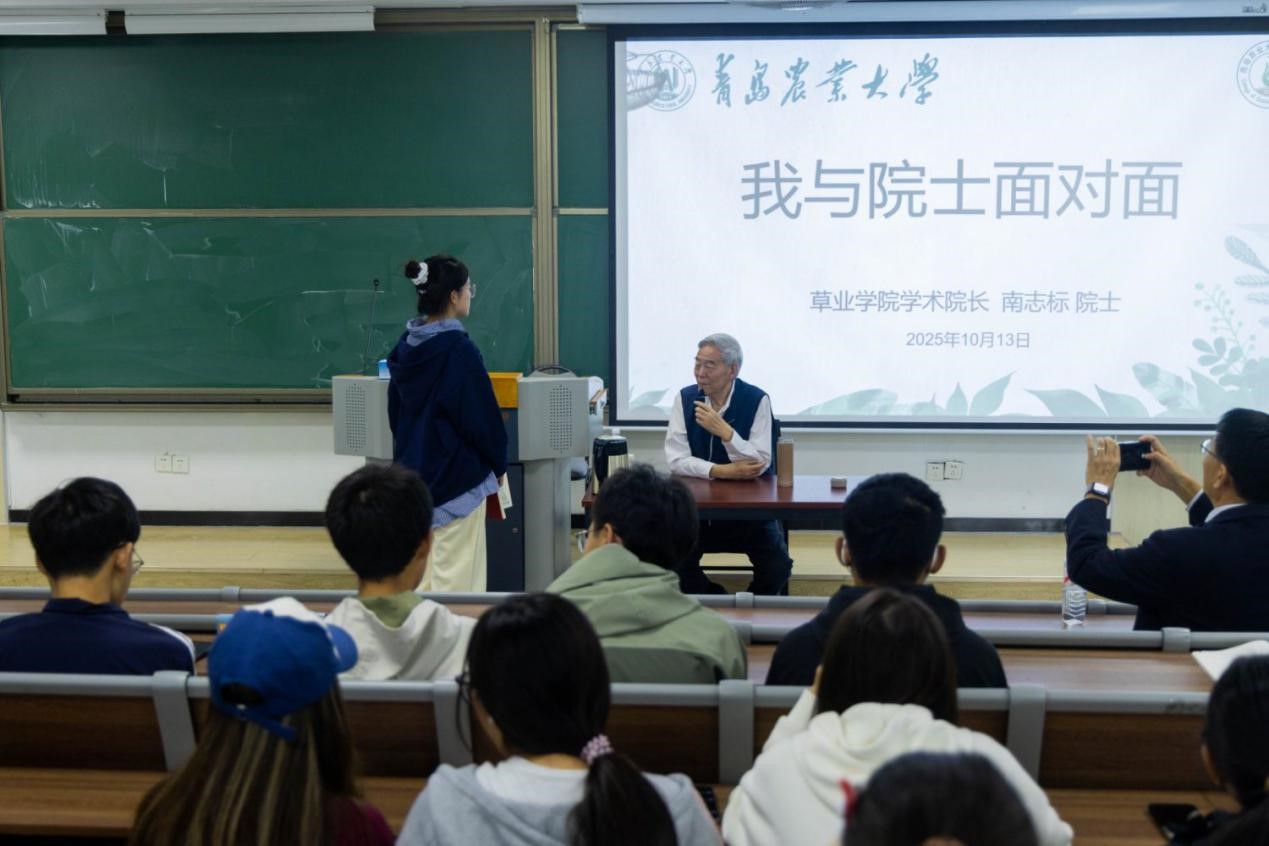 互动环节中,南志标院士对于同学们关注的草原生态修复方面需要具备哪些技能、草业科学如何适应时代的发展、苜蓿草种培育的步骤等问题逐一进行了解答。