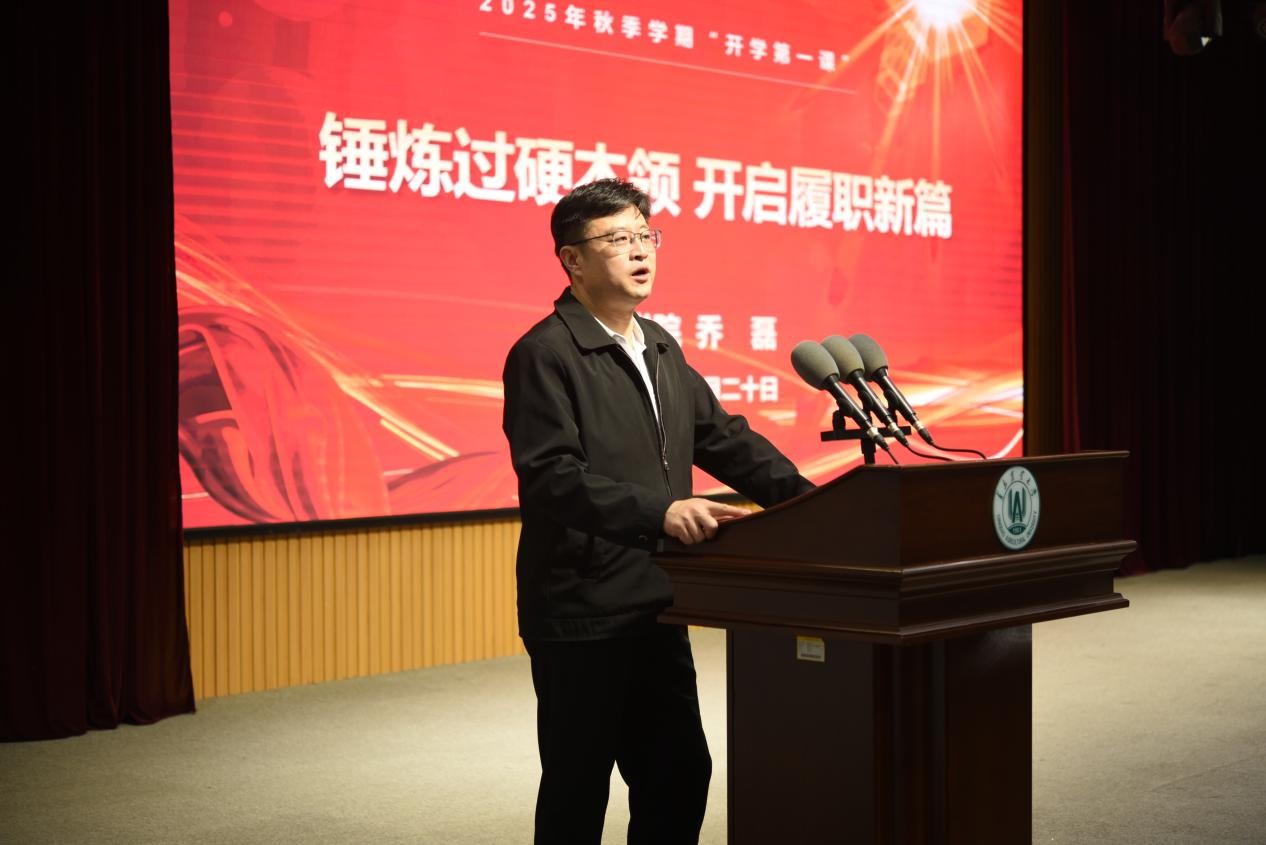 williamhill官党委书记乔磊在讲话中,对上一届学生干部的辛勤付出表示感谢。他指出,学生干部应发挥模范带头作用,成为学院与学生之间的坚实桥梁,发挥好自我教育、自我管理、自我服务的作用。他对2025届学生会、学生发展服务中心的学生干部提出了:要加强政治理论学习、强化服务宗旨、深耕专业学习、锤炼务实作风、坚持创新发展、严守纪律规矩等六条要求。