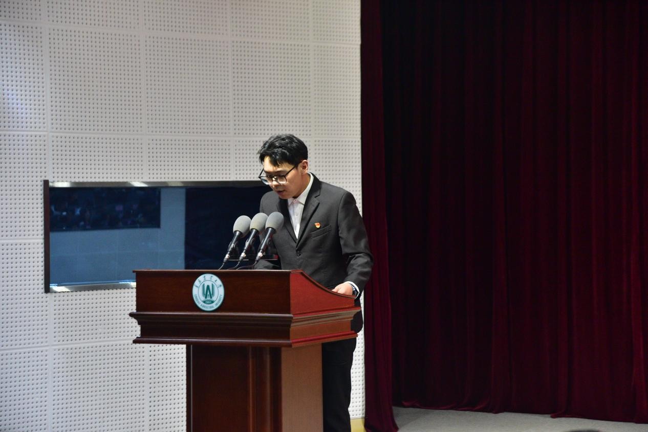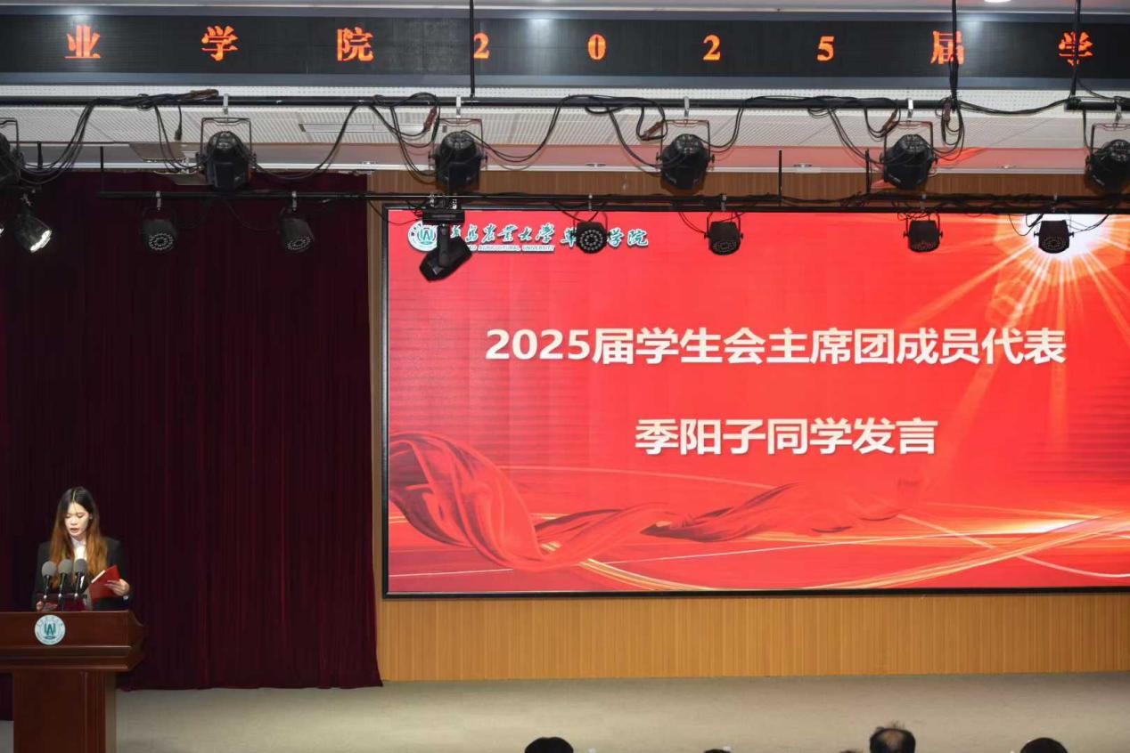 2025届学生会主席团成员季阳子代表2025届学生会、学生发展服务中心全体成员作表态发言,2024届学生会主席团成员张源做总结发言。