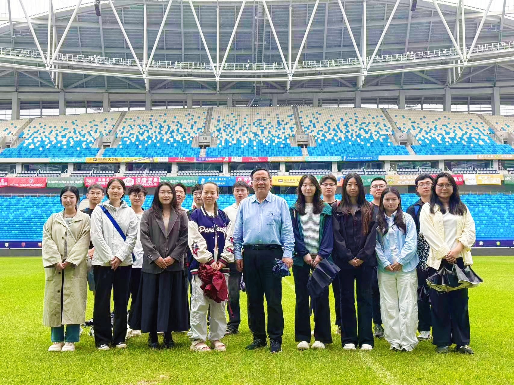 在青岛青春足球场,养护团队负责人介绍了建植要点:“这里采用高羊茅与早熟禾混播,既耐践踏,又具有较强的抗病性,能够满足高强度赛事需求。”场地底层铺设人造草丝并填充河沙,结合 95% 天然草的锚固草技术,有效提升了渗水性与草根保护,并延长了草坪寿命。学生们蹲身观察草坪结构,认真记录养护细节,还现场体验了地暖、补光和刈割设备的应用。大家认为,课堂上讲授的“环境调控与草种适配性”,在这里得到了最直观的印证。