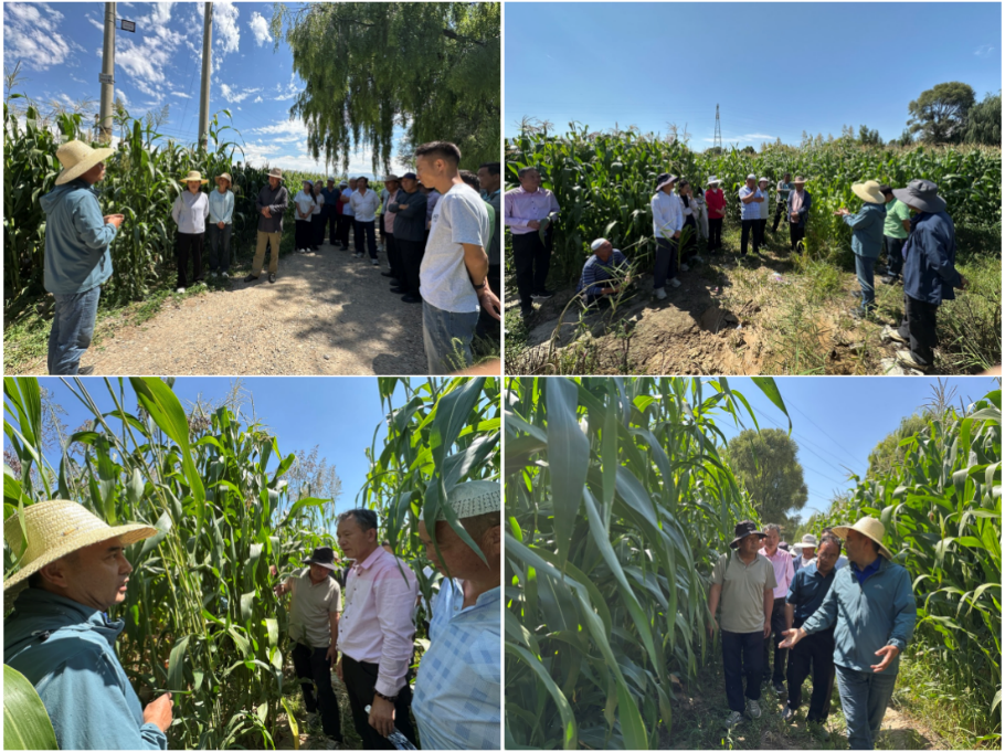 在种植基地,村书记们深入田间地头,近距离观摩了不同甜高粱品种的生长表现。大家认真聆听郭教授的细致讲解,一边仔细观察植株高度、茎粗和叶况等关键指标,对不同品种在适应性、抗逆性以及产量与品质特性等方面的差异有了直观了解。通过现场互动交流,村书记们对甜高粱在本地土壤气候条件下的实际表现和推广潜力形成了全面、深入的认识。