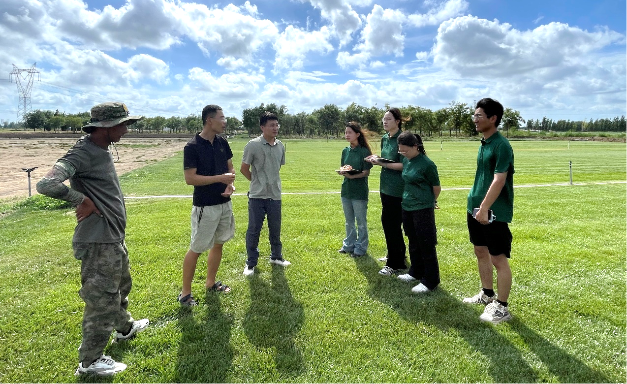 在青岛莱西四季青草坪基地,同学们了解了基地推行的林下经济模式——在平整的林下空间播种适宜草坪草,实现土地立体化利用。这一模式打破了单纯依赖林木或草坪的单一经营局限,既避免土地资源低效占用,节约宝贵耕地,又为种植者带来林木与草坪草的双重收益,成为践行可持续发展、促进土地节约集约利用的生动范例。